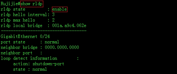 Rujijie(config-if-range)#rldp port loop-detect shutdown-port