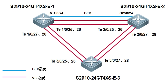 1、3台S2910-24GT4XS-E设备之间分别通过一条VSL链路互联;