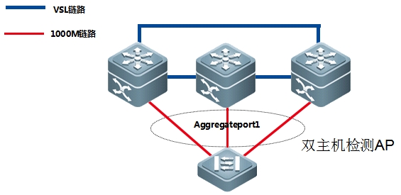 在多台VSU要完全防止双主机,最好的方式采用聚合检测,这样不用像BFD那样,需要多条BFD线路两两互联。聚合检测只需要n条线路即可。但是前提是下联的接入交换机是锐捷设备,这样保证锐捷的私有报文可以正常转发。